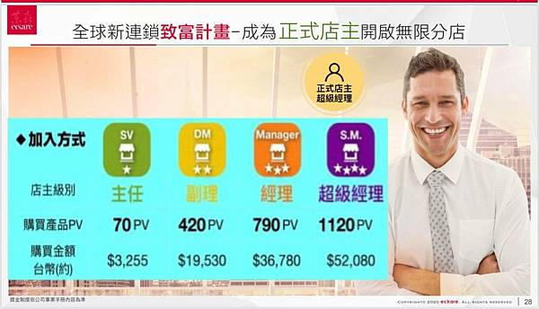 2.如果你已經準備好了,下定決心要在東森拚,想賺大錢的朋友,建議你用超級經理或經理級別加入,超經和經理差別在獎金的封頂值,當你組織越大就越容易碰到封頂.